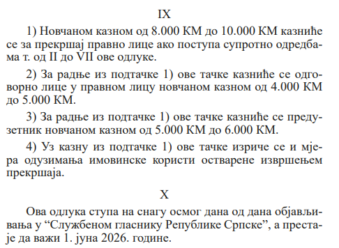 U SL.GL. 114/25 objavljene su izmjene Zakona o doprinosima i Zakona o porezu na dohodak. Izmjenama je ukinuto predviđeno povećanje osnovice za doprinose od 1.1.2026. za lica koja obavljaju preduzetničku djelatnost sa 70% na 80% prosječne bruto plate, tako da i dalje ostaje kao i do sada da je za ova lica osnovica za doprinose 70% prosječne bruto plate. Za lica koja su radno angažovana na sezonskim i drugim poslovima privremenog karaktera propisani su doprinosi u iznosu od 16 KM i porez u iznosu od 9 KM za svaki dan radnog angažovanja. Pročitaj više  U SL.GL. 114/25 objavljene su izmjene Zakona o doprinosima i Zakona o porezu na dohodak. Izmjenama je ukinuto predviđeno povećanje osnovice za doprinose od 1.1.2026. za lica koja obavljaju preduzetničku djelatnost sa 70% na 80% prosječne bruto plate, tako da i dalje ostaje kao i do sada da je za ova lica osnovica za doprinose 70% prosječne bruto plate. Za lica koja su radno angažovana na sezonskim i drugim poslovima privremenog karaktera propisani su doprinosi u iznosu od 16 KM i porez u iznosu od 9 KM za svaki dan radnog angažovanja. Prethodnim izmjenama Zakona o porezu na dohodak uveden je član 61a kojim je definisano oporezivanje nerezidenata koji na teritoriji Republike Srpske ostvare dohodak obavljanjem samostalne djelatnosti (odnosno pružanjem usluga) na način da je isplatilac naknade iz Republike Srpske dužan da obračuna i plati porez po stopi 10%. Novim izmjenama uvedeno je da obveznici poreza na dohodak po istom principu plaćaju porez na isplate nerezidentima pravnim licima.